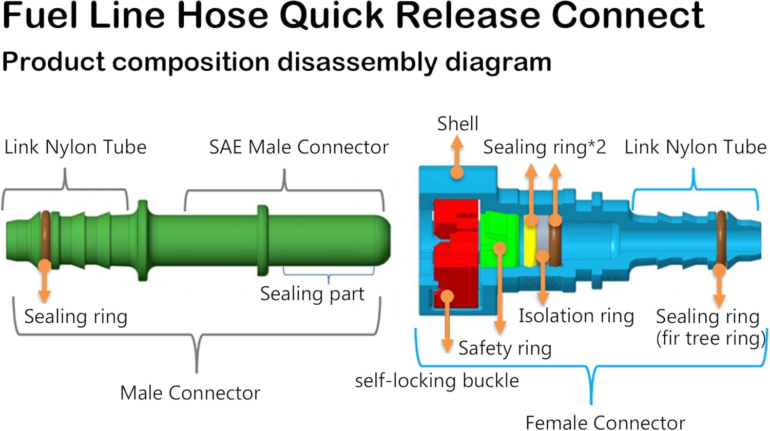 - 【High-quality Material】The Fuel Line Hose Quick Release Connector Made of High-Quality Black Nylon Integrated Seal for Optimal Tightness. Durable to use, Corrosion Resistance Characteristics.
