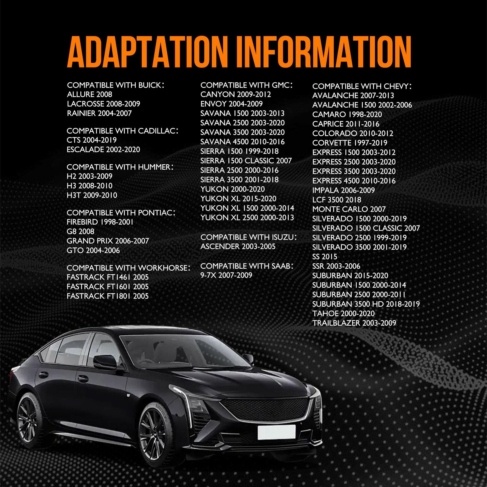 - ¡¾Applicability¡¿The part compatible with Buick Cadillac Chevy GMC Hummer Isuzu Pontica Saab Workhorse.Please carefully check your vehicle year/make/model by using the part finder/compatibility
