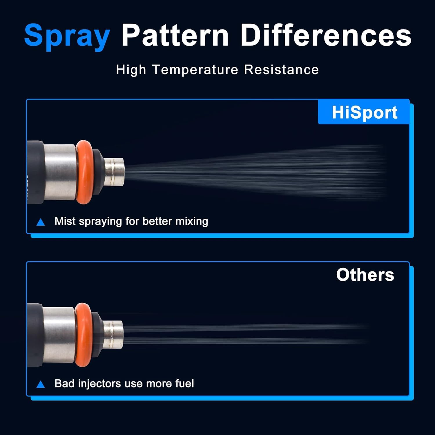 - [HIGH CONTROL QUALITY] - HiSport fuel injectors Internal seal rings protected from fuel exposure, so can longer-lasting fuel injectors durability, meets OEM standards, 100% tested in the warehouse before shipping