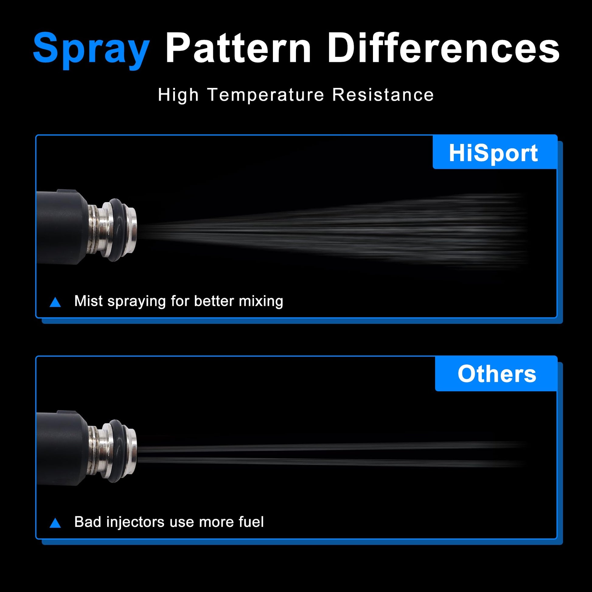 - [HIGH CONTROL QUALITY] - HiSport fuel injectors Internal seal rings protected from fuel exposure, so can longer-lasting fuel injectors durability, meets OEM standards, 100% tested in the warehouse before shipping