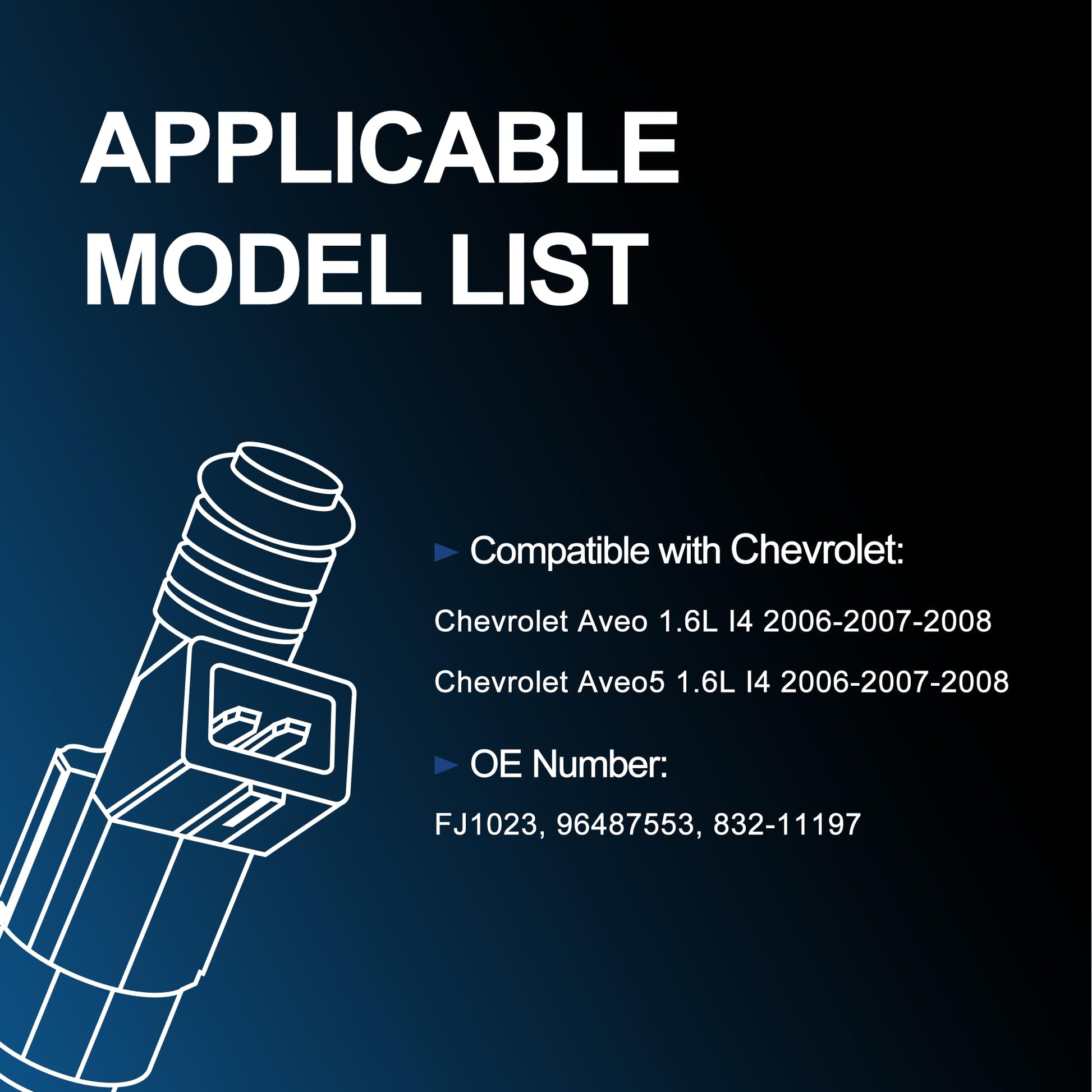 - [FITMENT] - This fuel injector fits Chevrolet, 1.6L engine type, including models such as Aveo, Aveo5. This part compatible for vehicles made in 2006,2007,2008