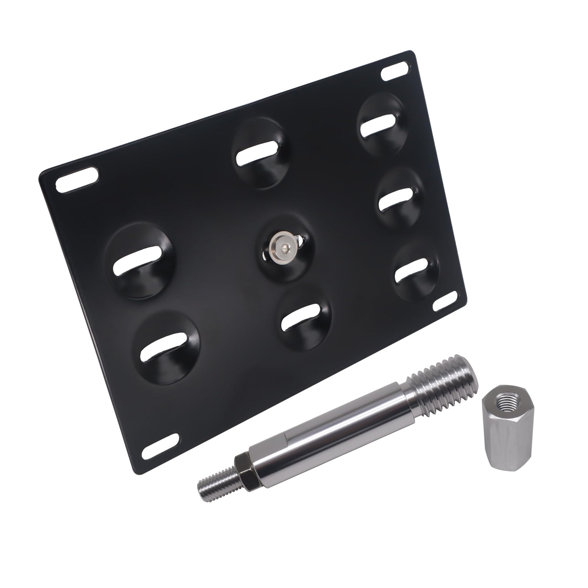 - ¡¾Material¡¿Bumper Tow Hook License Plate Mount Bracket is made of High-Quality Aluminum T6061. Black powder coat with a matte finish