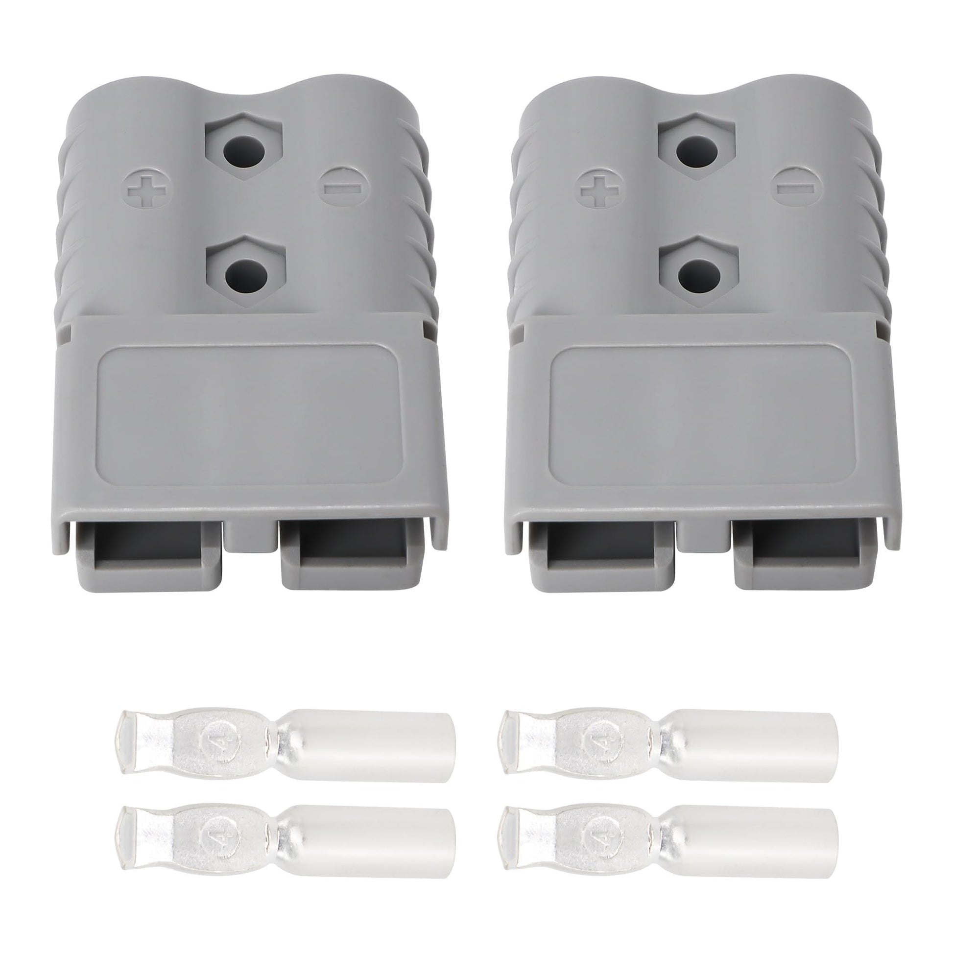 - [Silver Plated Contacts]-The connector features silver plated contacts, which provide greater longevity, especially in high power and elevated temperature applications. This plating helps to reduce resistance and prevent corrosion, ensuring reliable performance over time. The terminals offer versatility, allowing them to be secured to the cables either by crimping or soldering, adapting to different installation preferences and requirements.