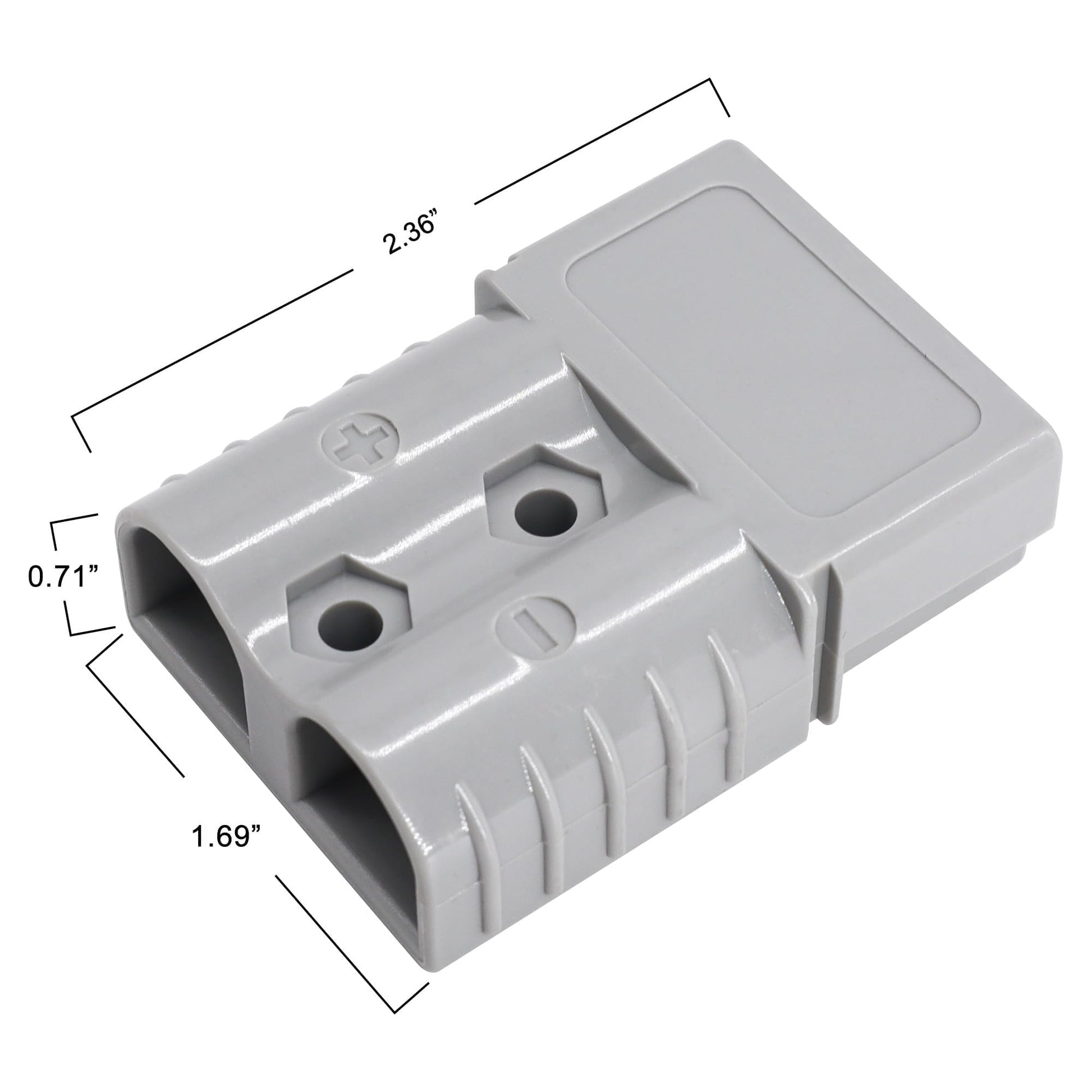 - [Ratings]-This connector is rated for a maximum of 120 amps and 600 volts, ensuring high-performance even under heavy loads. Measuring approximately 2.36" in length, 1.69" in width, and 0.71" in height (LxWxH), it features a light and durable polycarbonate housing. The contact barrel supports wire sizes from 2 to 6 AWG (1.3 mm2 to 21.1/33.6 mm2), providing flexibility for various applications.