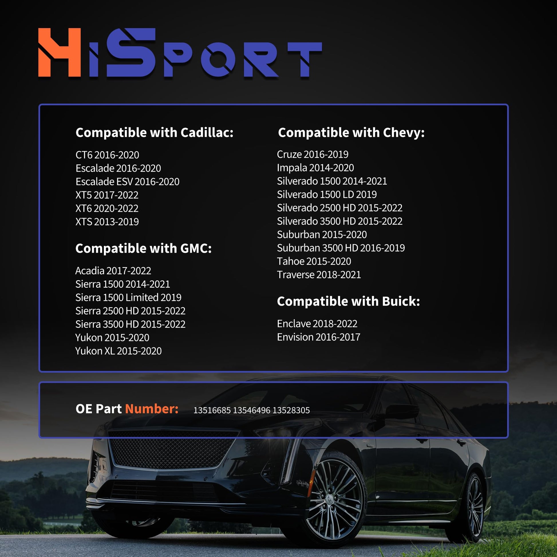 - Compatibility: This part with Buick Enclave 2018-2022, Envision 2016-2017, Compatible with Cadillac CT6 2016-2020, Escalade 2016-2020, Escalade ESV 2016-2020, XT5 2017-2022, XT6 2020-2022, XTS 2013-2019