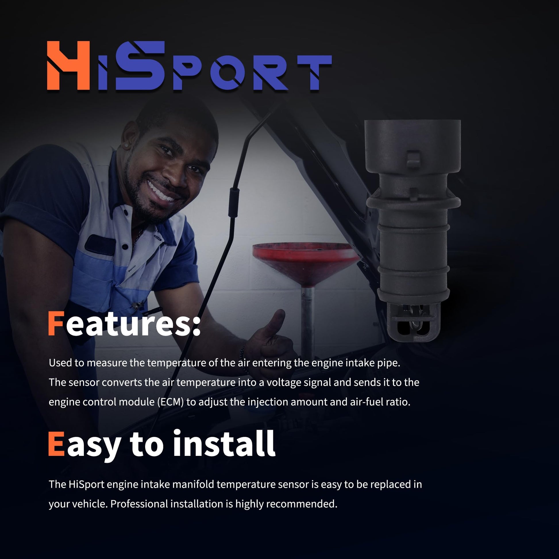 - EASY TO INSTALL: The HiSport engine intake manifold temperature sensor is easy to be replaced in your vehicle. Professional installation is highly recommended.