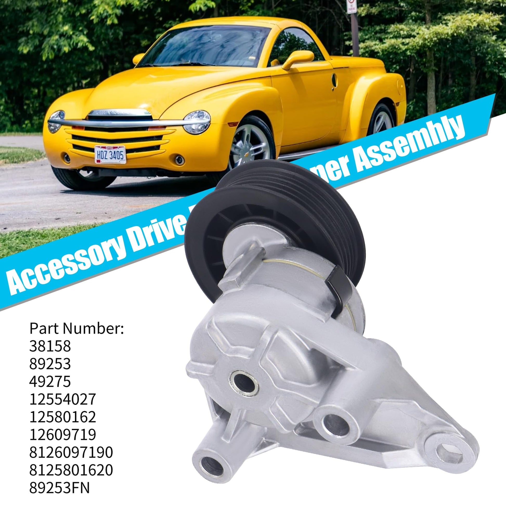 HiSport 38158 Belt Tensioner Compatible with Buick Rainier, Cadillac Escalade, Chevrolet Avalanche Express 1500 2500 3500 Suburban Tahoe, GMC Envoy Savana Sierra, Hummer H2, Isuzu NPR, Saab 9-7X