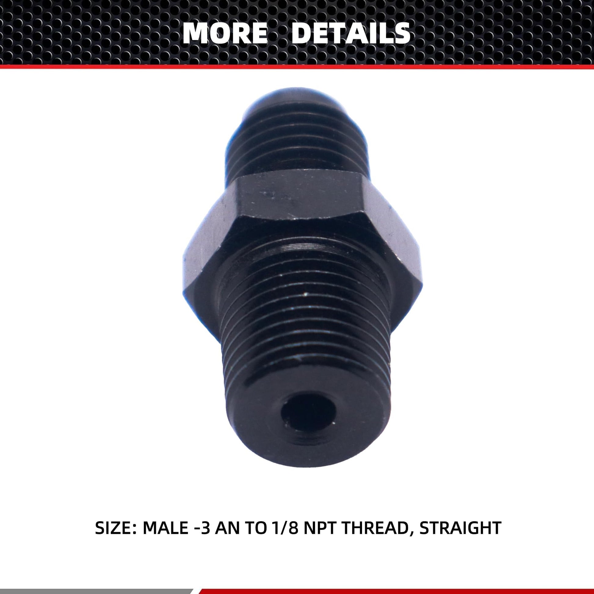 HiSport 3AN to 1/8 NPT Male Hose Fitting Adapter, Universal Aluminum Flare Male 3AN to 1/8'' NPT Union Fuel Oil Line Pipe Connector Black Anodized