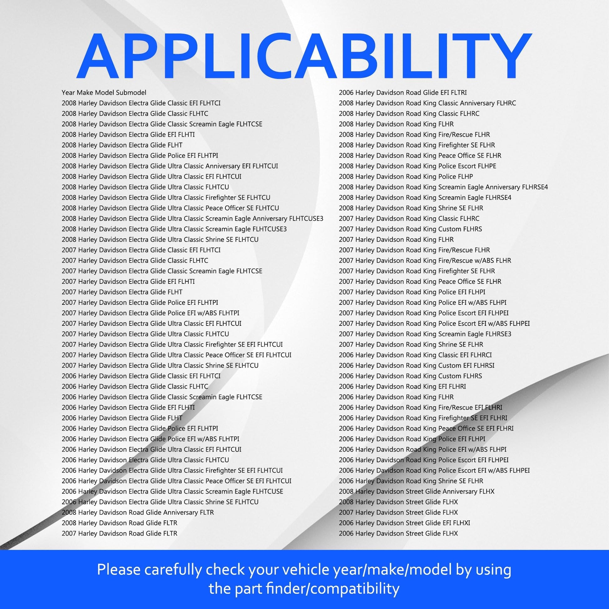 - [Fitment]-Compatible with Harley Davidson Electra Glide Classic EFI FLHTCI Ultra Classic Anniversary EFI FLHTCUI 2008 Street Glide FLHX Road King Classic FLHRC 2007