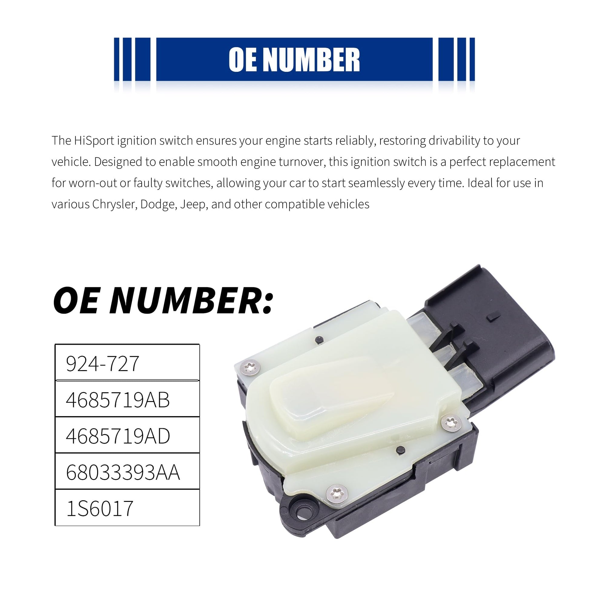 HiSport 924-727 Ignition Starter Switch Compatible with Chrysler 200 300 Pacifica Pt Cruiser Sebring Town & Country Voyager; Dodge Avenger Caliber Caravan Charger Grand Caravan; Jeep Commander Compass