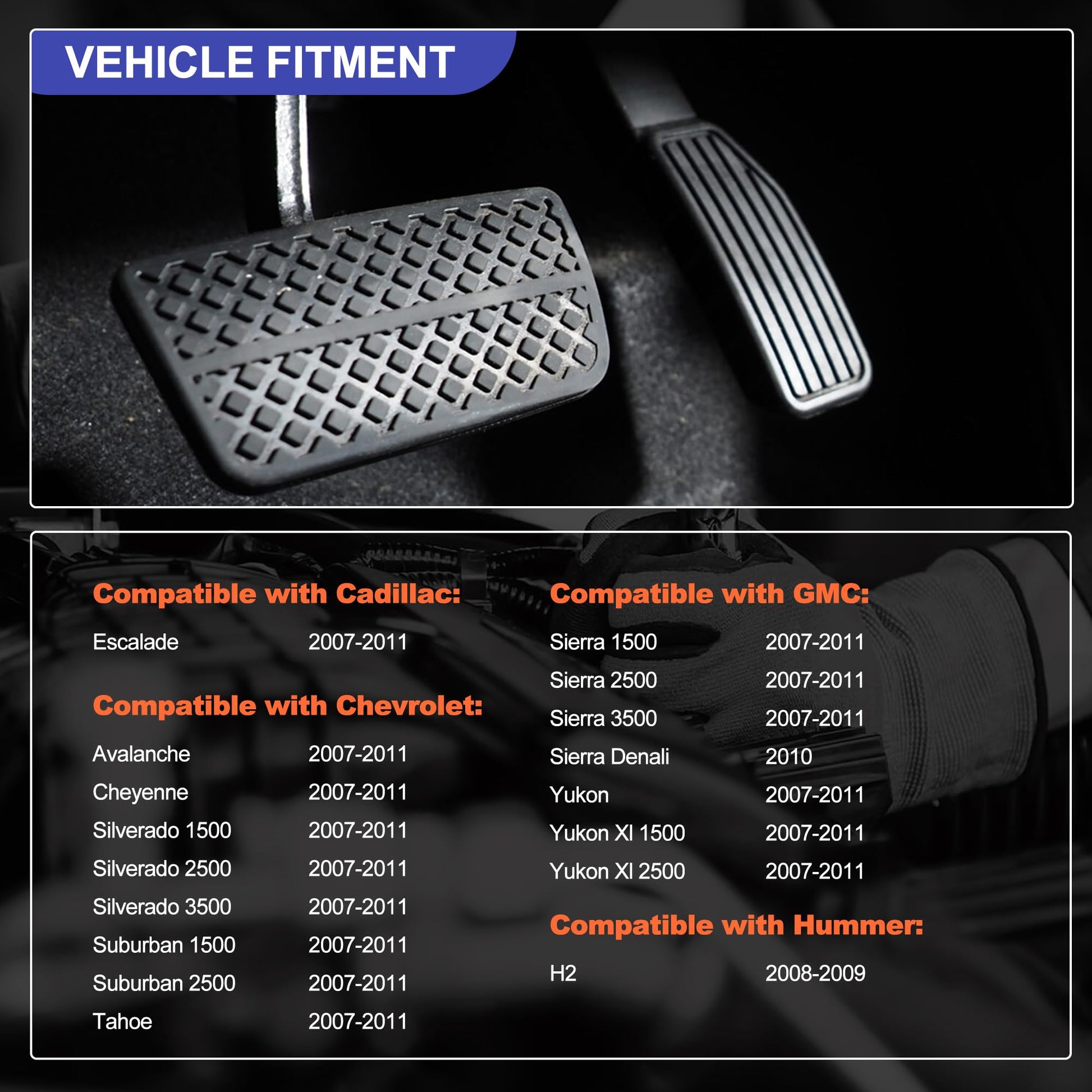 - Wide Compatibility: Replacement for Cadillac Escalade 2007-2011. Replacement for Chevrolet Avalanche 2007-2011, Cheyenne 2007-2011, Silverado 1500 2007-2011, Silverado 2500 2007-2011, Silverado 3500 2007-2011, Suburban 1500 2007-2011, Suburban 2500 2007-2011, Tahoe 2007-2011. Replacement for GMC Sierra 1500 2007-2011, Sierra 2500 2007-2011, Sierra 3500 2007-2011, Sierra Denali 2010, Yukon 2007-2011, Yukon Xl 1500 2007-2011, Yukon Xl 2500 2007-2011. Replacement for Hummer H2 2008-2009.