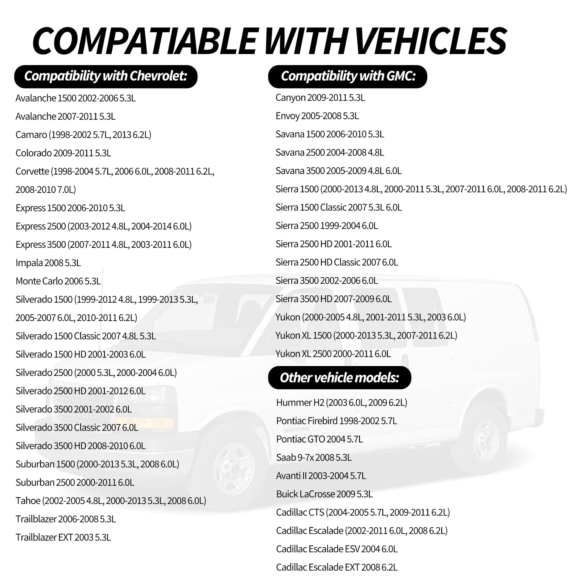 - ¡¾Applicability¡¿Compatible with Chevrolet GMC Hummer and Pontiac models featuring LS, LSX, LS1, LQ4, LQ9, LS2, LS3, LS7 engines, ranging from 4.8L to 6.0L. Ensure compatibility by verifying your vehicle's year, make, and model using our part finder or compatibility tool.