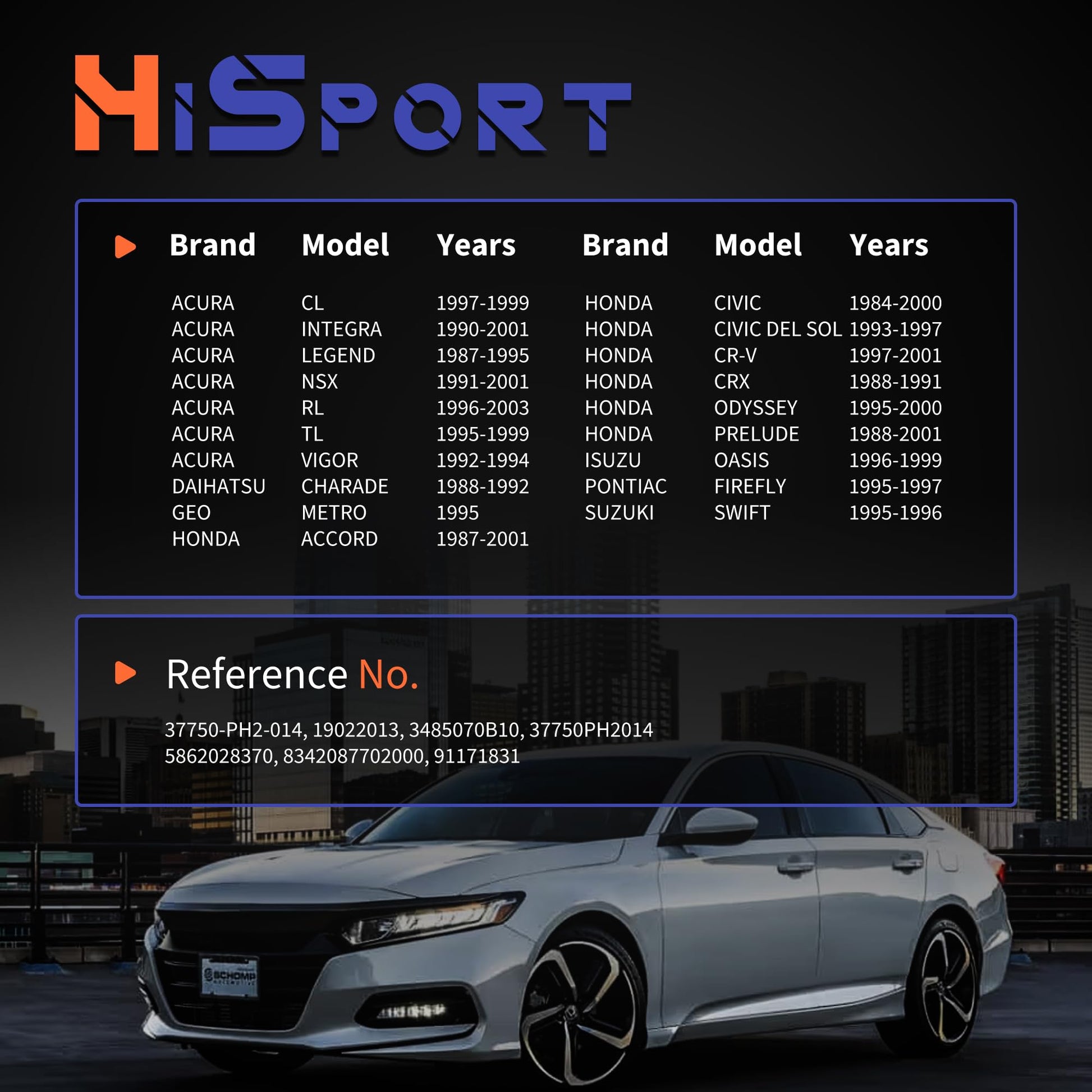 - FITMENT-2: Compatible with Honda Accord 1987-2001, Civic 1984-2000, Civic Del Sol 1993-1997, CR-V 1997-2001, CRX 1988-1991, Odyssey 1995-2000, Prelude 1988-2001; Compatible with Isuzu Oasis 1996-1999; Compatible with Pontiac Firefly 1995-1997; Compatible with Suzuki Swift 1995-1996