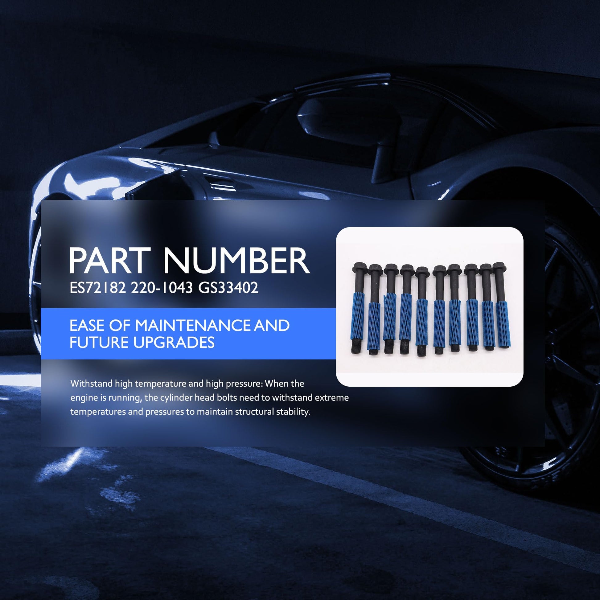 HiSport Engine Cylinder Head Bolt Set 10PC - Compatible with Toyota Tacoma 1995-2020 4Runner 1996-2010 T100 1994-1998 2.4L 2.7L - Replace ES72182 220-1043 GS33402