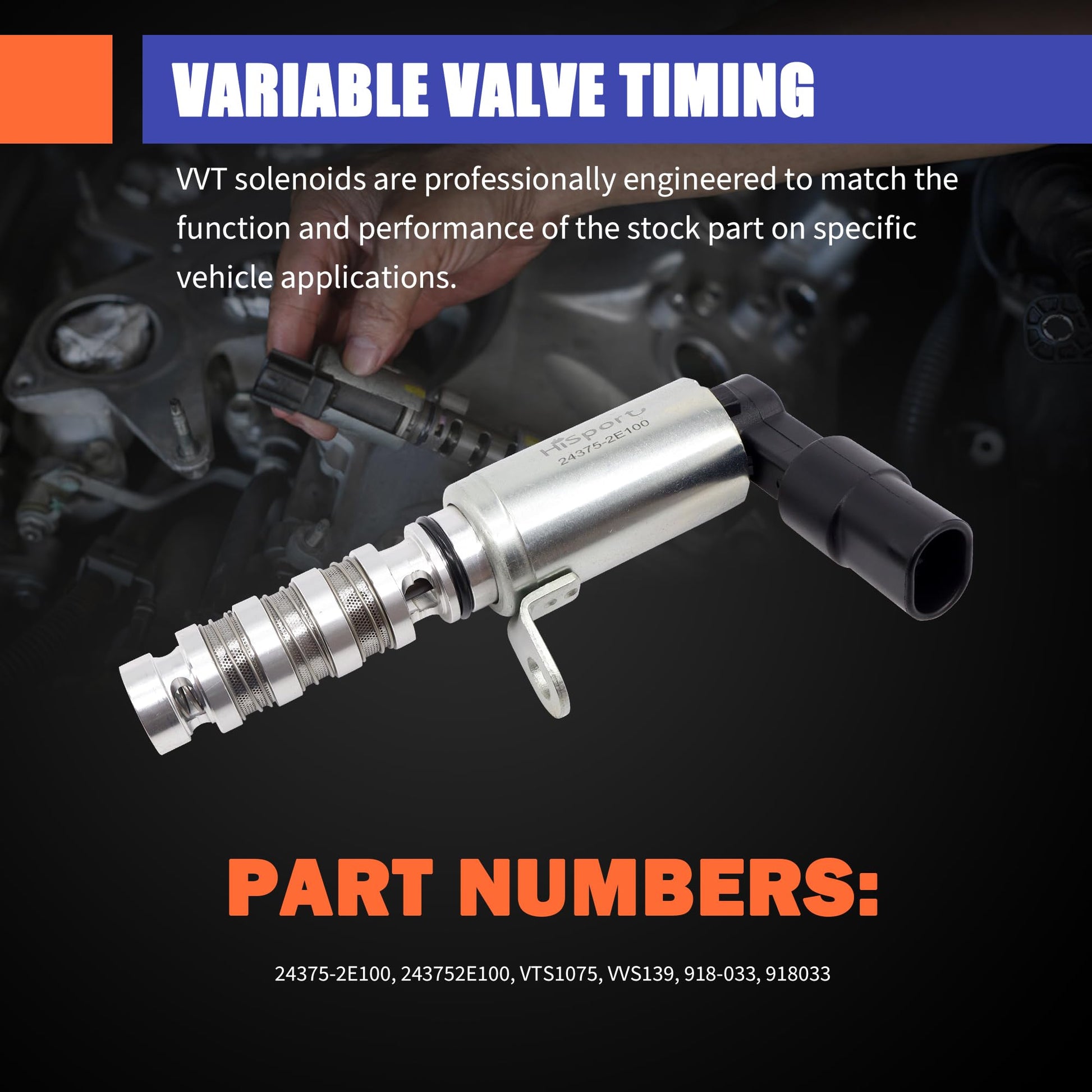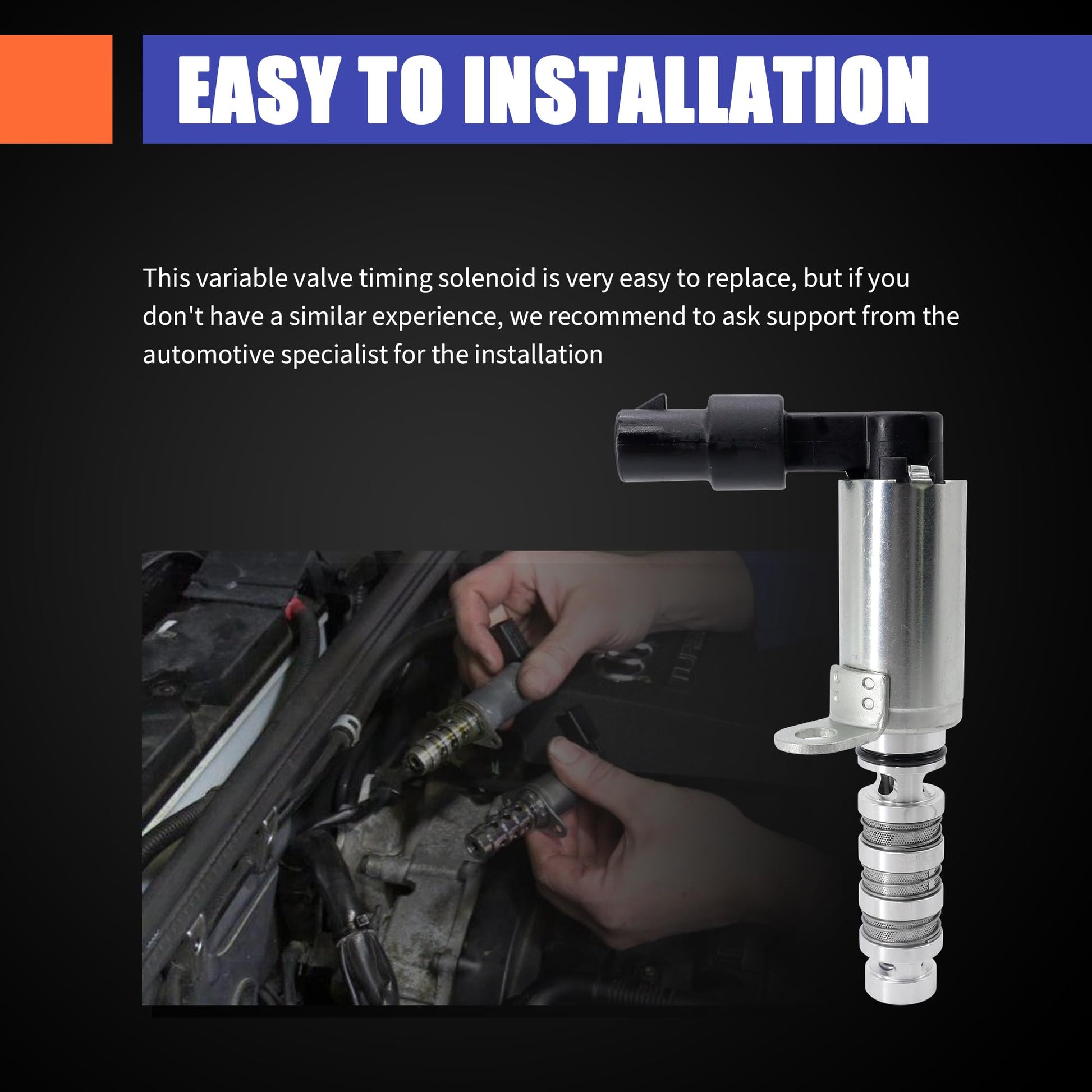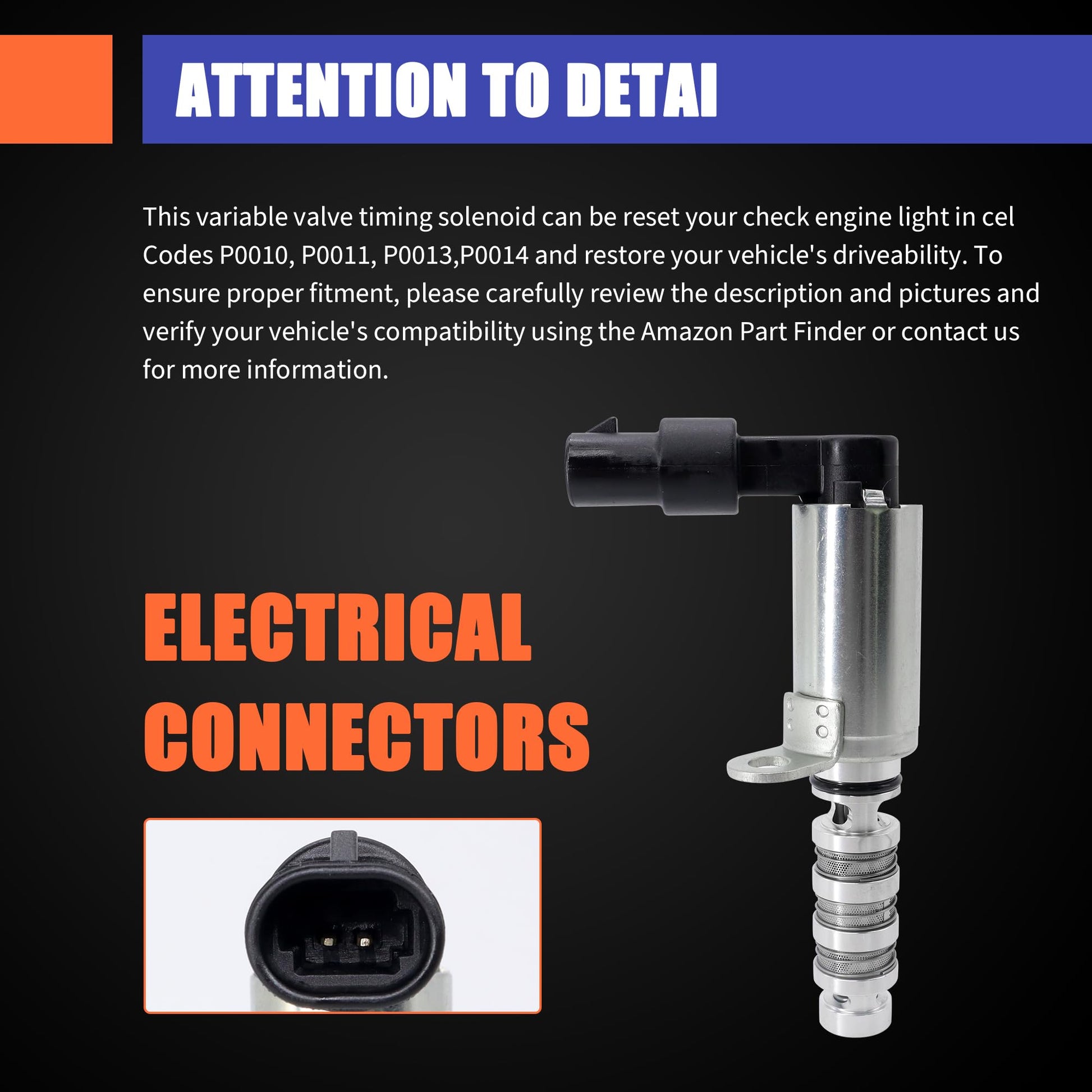 - Restores Engine Performance & Efficiency: Regulates camshaft position and controls intake/exhaust volume to optimize combustion. Effect resolves check engine lights (CEL) caused by VVT solenoid failure and improves fuel economy.