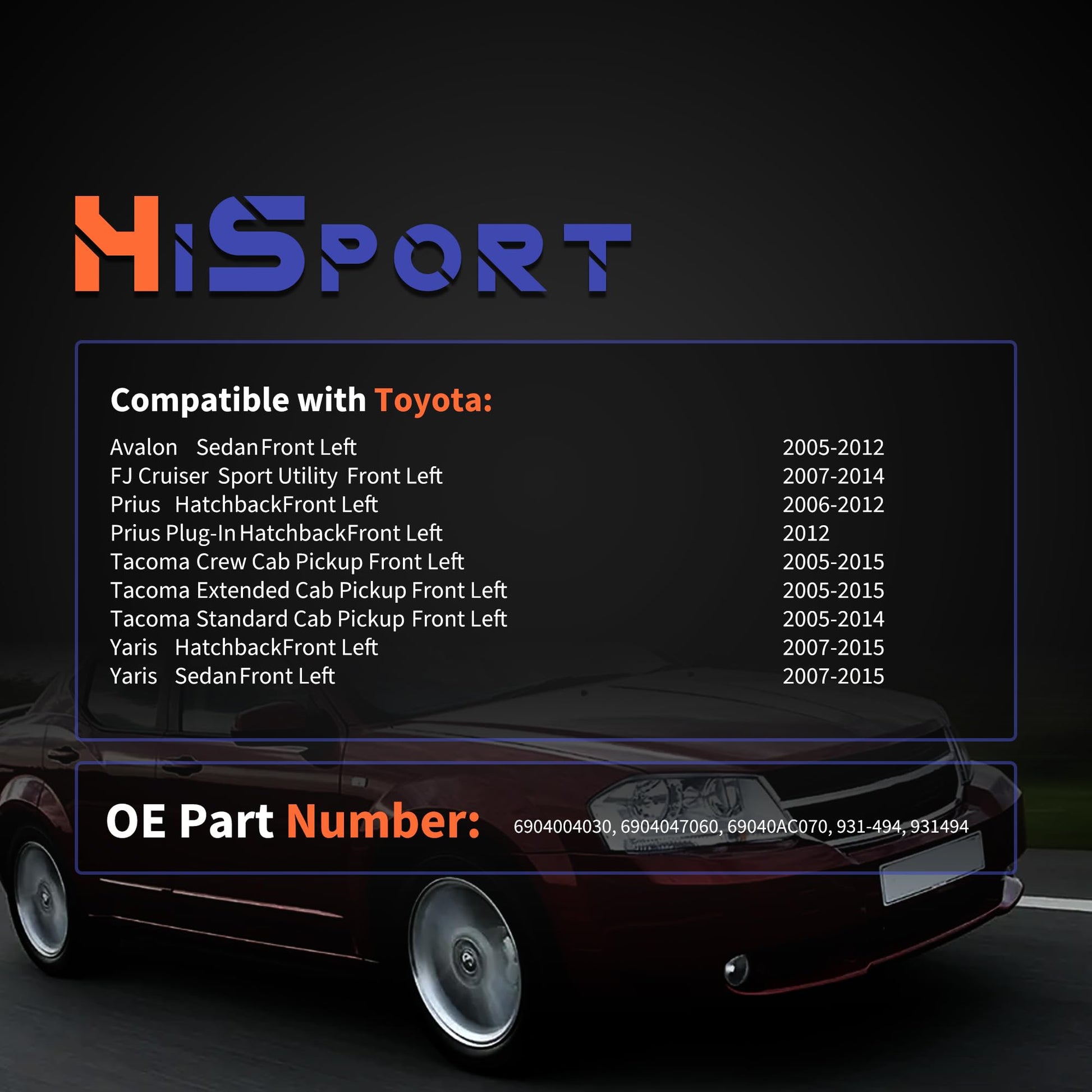 - [ Fitment 1] - Compatible with Toyota Avalon 2005-2012 Sedan , FJ Cruiser 2007-2014 Sport Utility , Prius 2006-2012 Hatchback , Prius Plug-In 2012 Hatchback