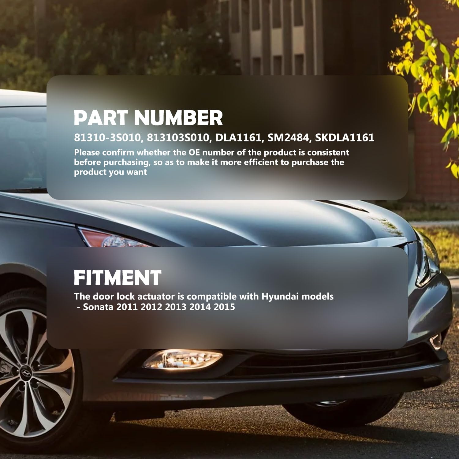 - FITMENT: The door lock actuator is compatible with Hyundai models - Sonata 2011 2012 2013 2014 2015