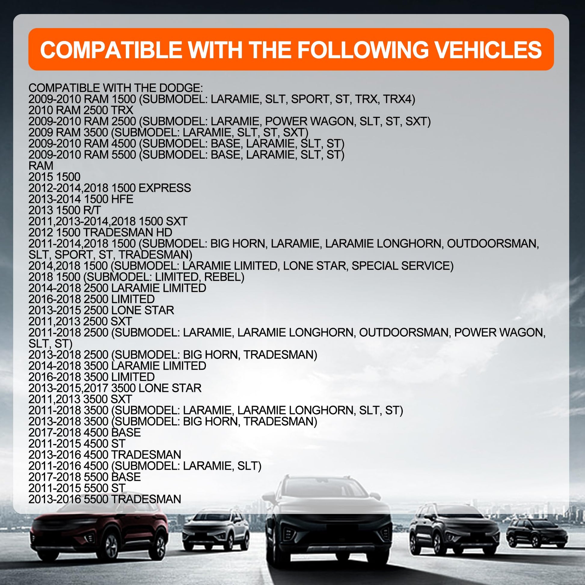 - ¡¾COMPATIBLE¡¿-Compatible with Dodge Ram 1500 2009-2010,Ram 2500 TRX 2010,Ram 2500 2009-2010,Ram 3500 2009,Ram 4500/5500 2009-2010;Compatible with Ram 1500 2011-2014 2018,Ram 2500/3500/4500/5500 2011-2018