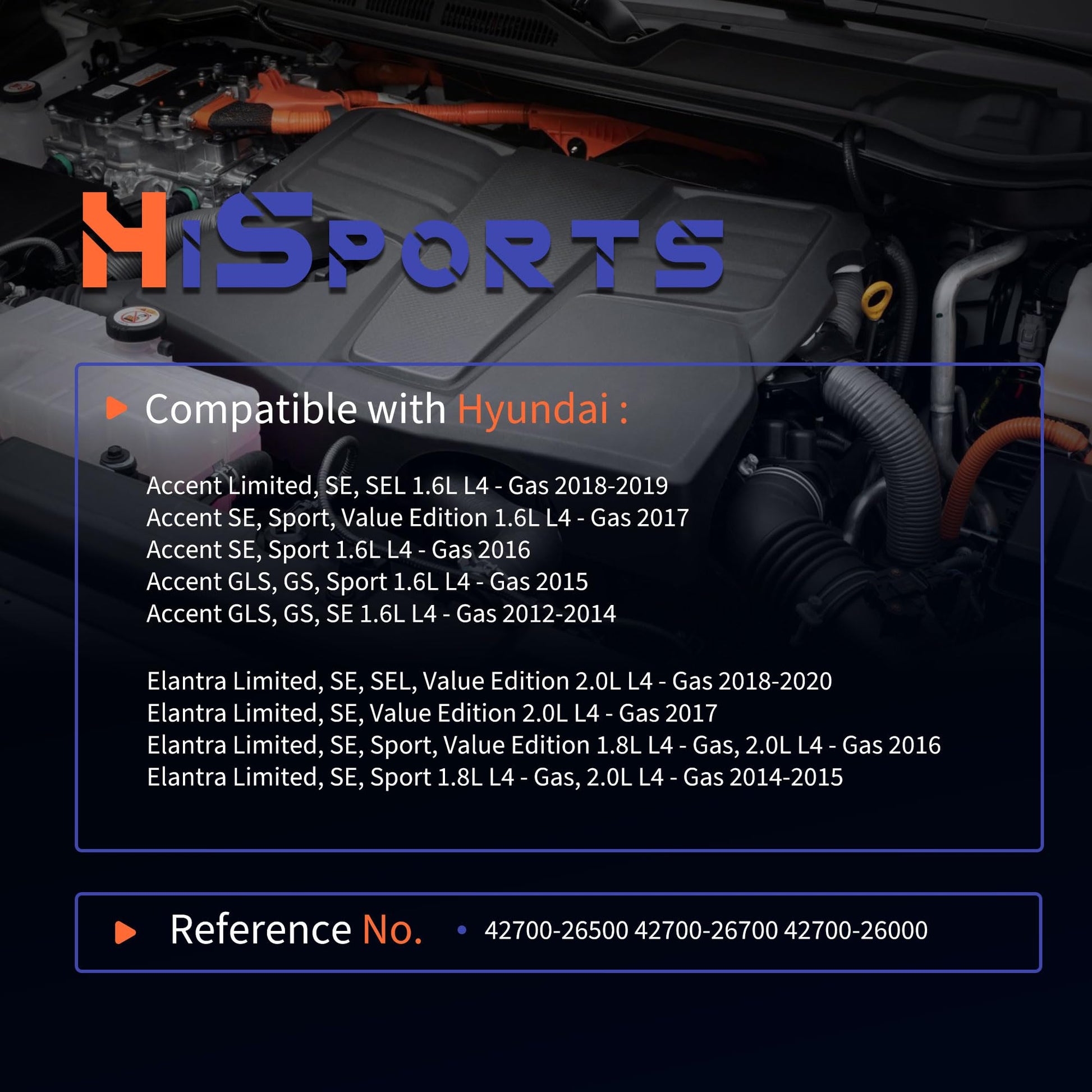 - Compatible with Accent GLS, GS, Sport 1.6L L4 - Gas 2015- GLS, GS, SE 1.6L L4 - Gas 2012-2014