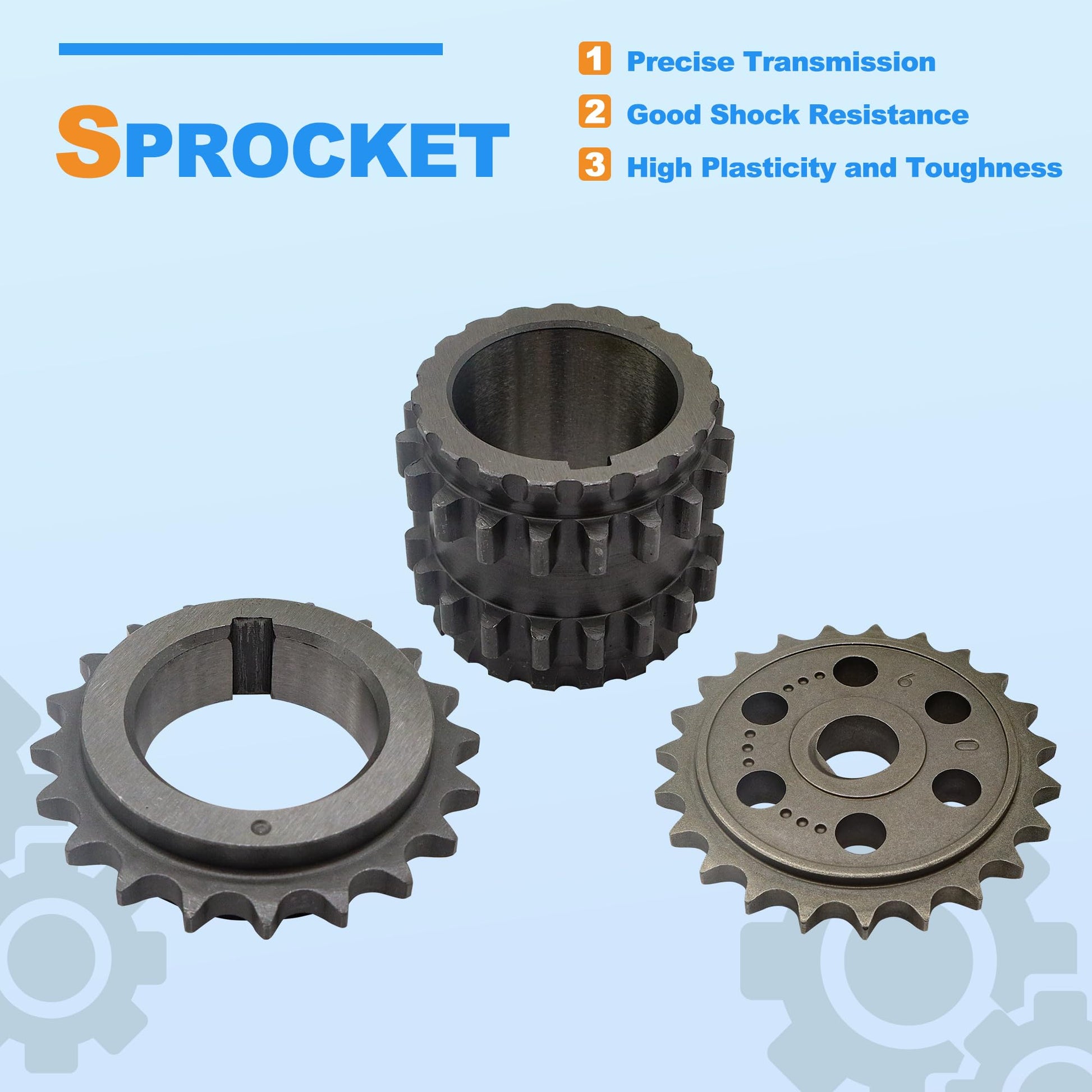 - Package Includes - 2x Timing Chains, 1x Crankshaft Gear, 2x Timing Tensioner Guide, 2x Timing Chain Guide, 2x Timing Chain Tensioners, 1x Balance Shaft Gear, 1x Balance Shaft Chain, 1x Oil Pump Gear, 1x Balance Shaft Chain Tensioner
