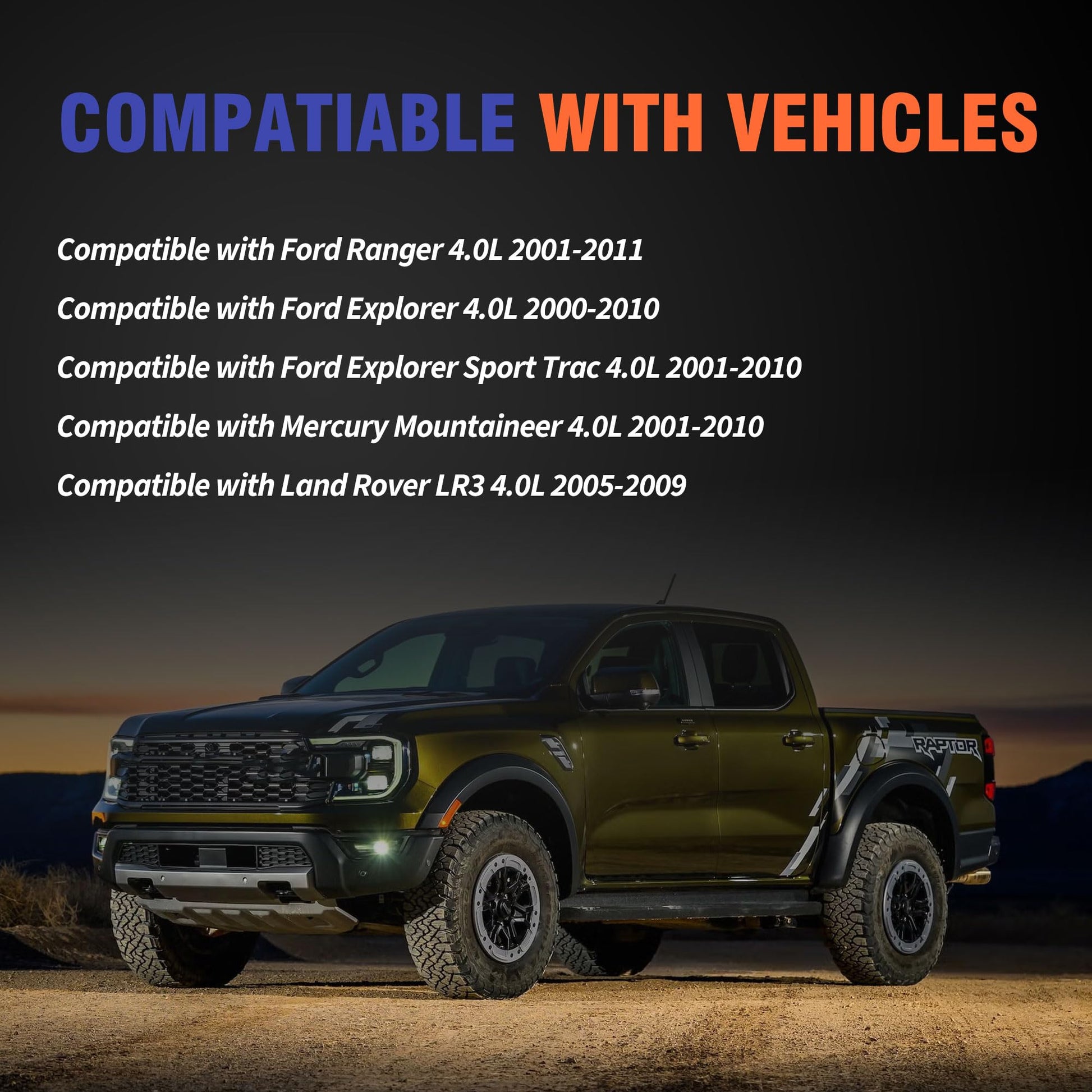 - [Applicability]The part compatible with Ford Ranger 4.0L 2001-2011 Explorer 4.0L 2000-2010 Explorer Sport Trac 4.0L 2001-2010.Compatible with Mercury Mountaineer 4.0L 2001-2010.Compatible with Land Rover LR3 4.0L 2005-2009